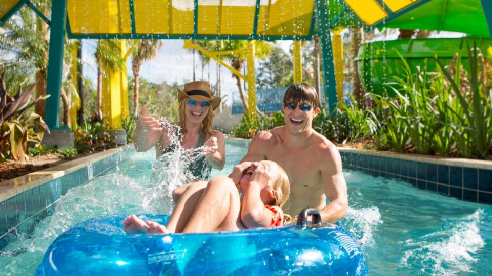 The Grove Resort & Water Park Orlando brings its brand of luxury island-style resort accommodations to The City Beautiful. Guests here eschew the typical hotel room for spacious apartment-style suites, whose amenities range from full kitchens and living rooms to screened balconies and in-suite laundry.